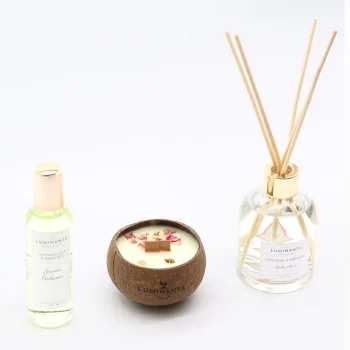 Notre fondant à l’odeur Eucalyptus-Lavande est une invitation à une expérience olfactive qui transforme votre intérieur. Fabriqué avec le plus grand soin par un maître parfumeur à Grasse, la capitale mondiale du parfum, ce fondant révèle une fragrance délicate et apaisante qui combine les bienfaits rafraîchissants de l’eucalyptus et la douceur relaxante de la lavande.