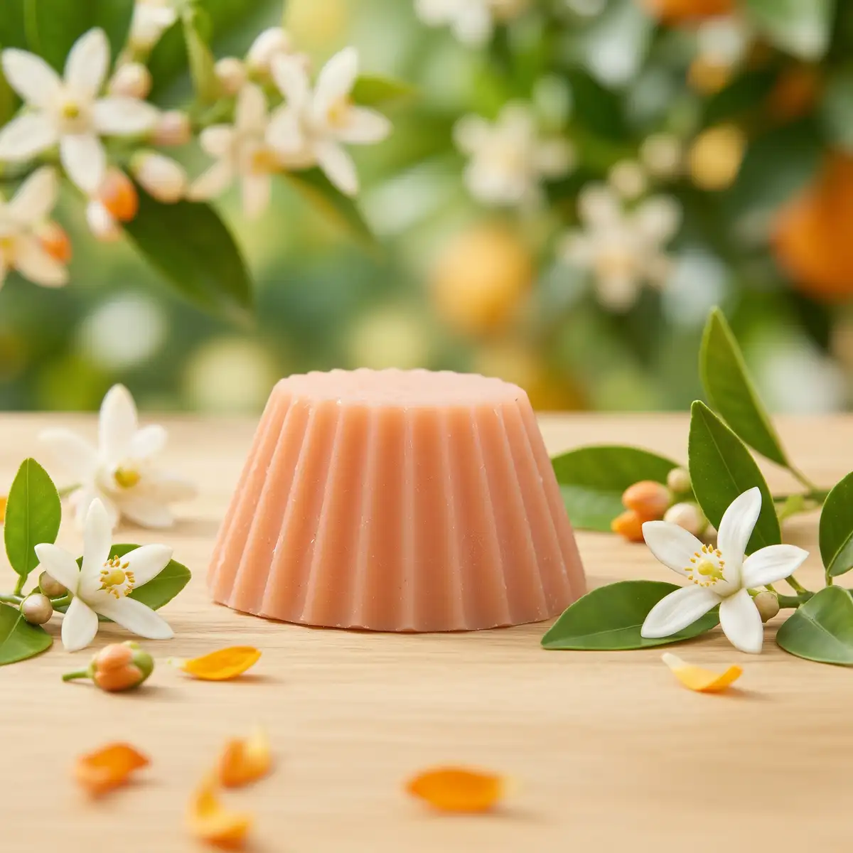 Fondant parfumé à la Fleur d’oranger. Cire végétale de soja, 100% naturelle. Fabrication artisanale Française, coulé à la main.