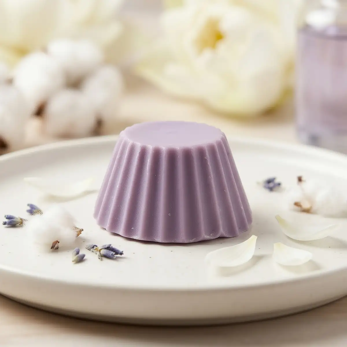 Fondant parfumé au Lotus blanc coton. Cire végétale de soja, 100% naturelle. Fabrication artisanale Française, coulé à la main.